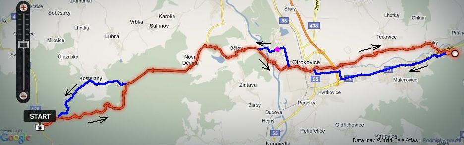 1. etapa: OTROKOVICE (ZLÍN) - BUNČ modrá + 4.etapa: BUNČ - OTROKOVICE (ZLÍN) červená